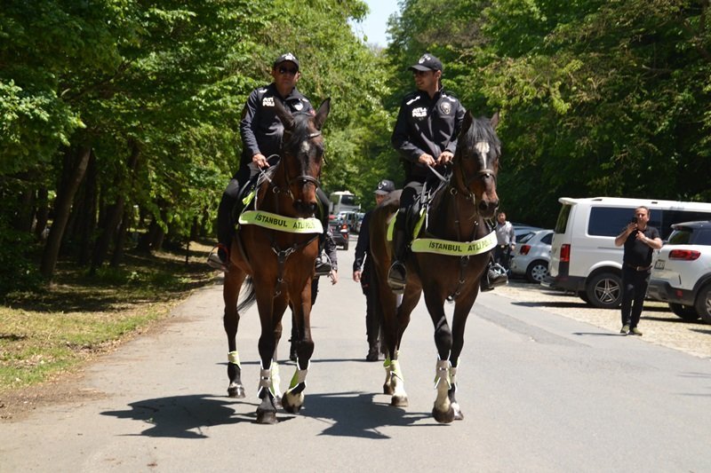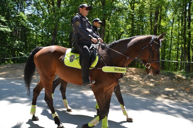 İstanbul Emniyet Müdürlüğü Çevik Kuvvet Şube Müdürlüğü’ne bağlı Atlı Birlik Grup Amirliği ekipleri Belgrad Ormanı’nda devriye gezerek denetim gerçekleştirdi. Hafta sonunu Belgrad Ormanı’nda geçirmek için gelen vatandaşlar da atlı polislerin denetimine yoğun ilgi gösterdi.