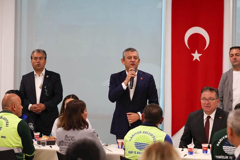 Sarıyer Belediyesi çalışanlarıyla öğlen yemeğinde bir araya gelen CHP Genel Başkanı Özgür Özel, çalışanlara hitaben yaptığı konuşmasında belediye çalışanlarının vatandaşla doğrudan temas eden kişiler olduğuna vurgu yaparak, “Sizler, sosyal belediyecilik anlayışının sahadaki temsilcilerisiniz. Belediyenin kapısından girdiğim andan itibaren sizlerin güler yüzüyle karşılaştım. Bu güler yüzlerin vatandaşa dönüyor olması bizim için çok kıymetli” dedi.