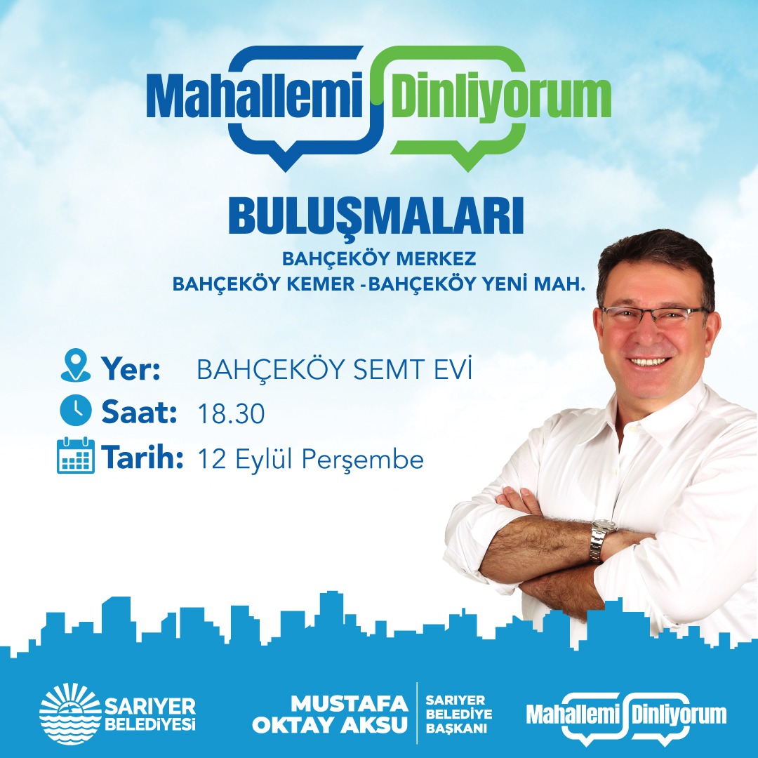 Geçtiğimiz haftalarda olduğu gibi Sarıyer’in birçok mahallesinde halkın sesini, bu kez Bahçeköy’den Sarıyer Belediyesi’ne duyuracak olan Mahallemi Dinliyorum programına yoğun katılım bekleniyor.