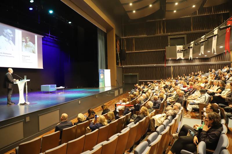Açılış konuşmalarının ardından Prof. Başar Bilgiç, “Alzheimer Hakkında Herşey” başlıklı panelin sunumunu gerçekleştirdi. Alzheimer hastalığının, beyin hücrelerinin ilerleyici bir şekilde hasar görmesiyle ortaya çıkan en yaygın demans türü olduğunu belirten Bilgiç, hastalığın belirtileri, tedavi yöntemleri ile bu hastalıktan korunma ve risk azaltma yöntemleri hakkında bilgiler aktardı. Hastalığın belirtiler kısmını üç evrede ele aldıklarını ifade eden Bilgiç, “Erken dönem olarak tanımladığımız birinci evrede unutkanlık, dikkat dağınıklığı, kelime bulma güçlüğü, zaman ve mekân karışıklığı, isteksizlik gibi belirtiler önemli ipuçlarıdır. Orta evrede, hafıza kaybı, uyku bozukluğu, tanıdık yüzleri karıştırma ve ileri evrede ise iletişim kuramama, yatak bağımlılığı idrar-dışkı kontrol kaybı ile beslenme güçlükleri şeklinde kendini gösterir” diye konuştu.