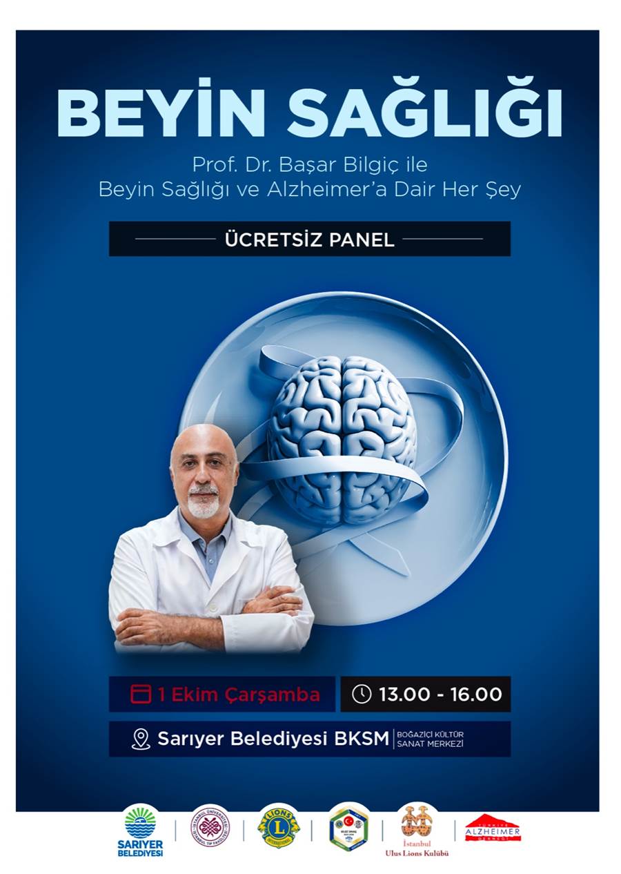 Sarıyer Belediyesi, İÜ Tıp Fakültesi, LİONS, İstanbul LİONS Kulübü, Türkiye Alzheimer Derneği ve LİONS 118T Yönetim Çevresi Genel Yönetmeni Bilge Savaş işbirliği ile toplum sağlığına dikkat çekmek, Alzheimer hastalığı için farkındalığı arttırmak, hastalığın erken tespitini sağlamak amacıyla düzenlenecek beyin sağlığı paneline tüm Sarıyerliler davet edildi.