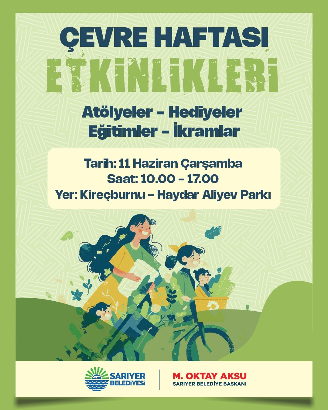 Yediden yetmişe tüm Sarıyerli komşulara yönelik hazırlanan, açılışını 11 Haziran Çarşamba (yarın) Sarıyer Belediye Başkanı M. Oktay Aksu’nun yapacağı ve 10:00 – 17:00 saatleri arasında Kireçburnu Haydar Aliyev Parkı’nda gün boyunca sürecek olan Sarıyer Çevre Şenliği programına yoğun katılım bekleniyor.