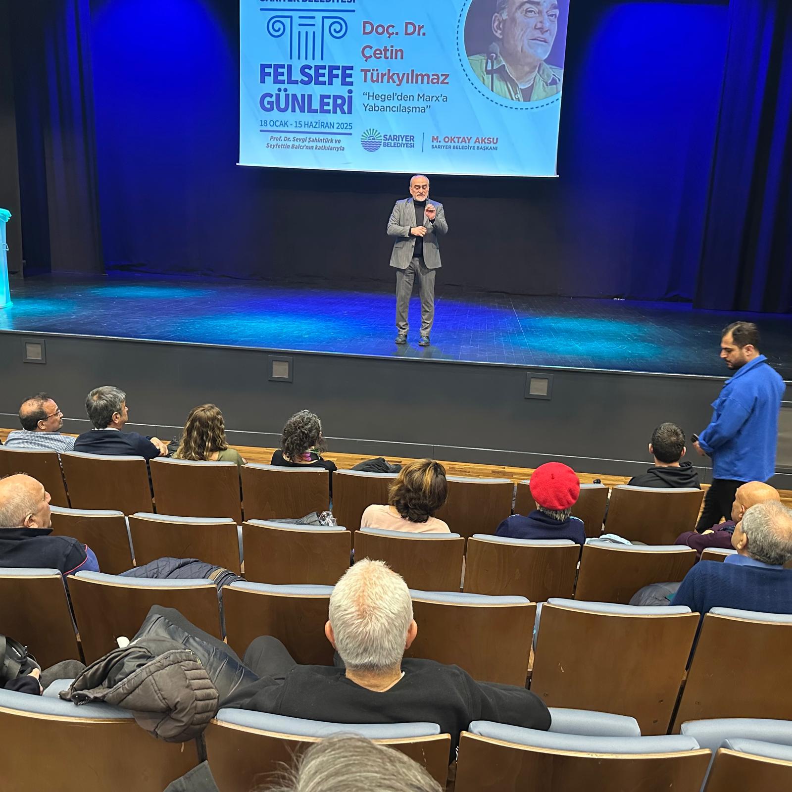 Sarıyer Belediyesi Kültür Müdürlüğü tarafından düzenlenen, Prof. Sevgi Şahintürk ve Seyfettin Balcı’nın katkılarıyla hazırlanan Sarıyer Belediyesi Felsefe Günleri, felsefeseverleri buluşturmaya devam ediyor. Yoğun ilgiyle takip edilen Felsefe Günleri’nin bu haftaki konuğu Doç. Dr. Çetin Türkyılmaz’ın “Hegel’den Marx’a Yabancılaşma” başlıklı sunumu dinleyenlerden yoğun ilgi gördü.