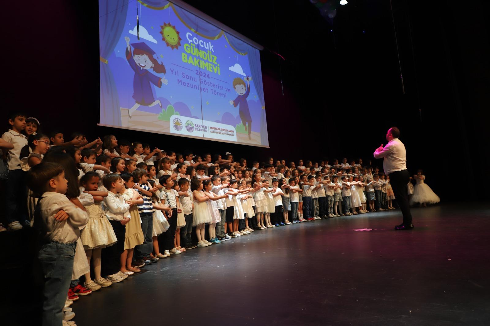 Sarıyer Belediyesi Çocuk Gündüz Bakımevi mezuniyet töreni Boğaziçi Kültür Sanat Merkezi’nde yapıldı. Törende 11 şubeden 235 çocuğun sergilediği gösteriler renkli anlara sahne olurken, duygulu anlar yaşayan veliler çocuklarına sağlanan eğitim ortamı dolayısıyla Sarıyer Belediye Başkanı Mustafa Oktay Aksu’ya teşekkür ettiler