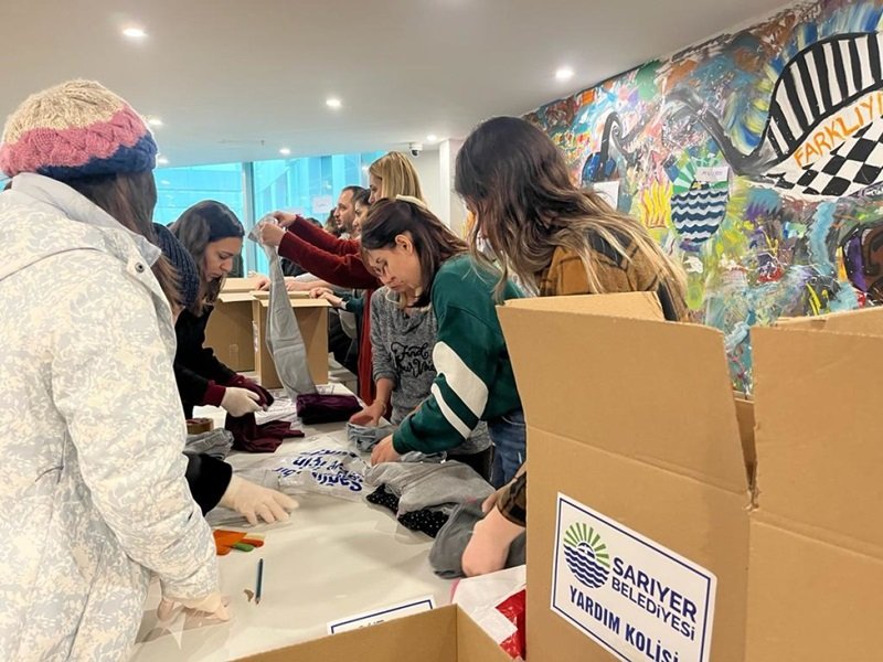 Kahramanmaraş merkezli 7.7 ve 7.6 büyüklüğündeki iki depremin hemen ardından Sarıyerliler dayanışma için kollarını sıvadı ve tek yürek oldu. Sarıyer Belediyesi’nden ekipler deprem bölgesinde çalışmalarını sürdürürken, yardım kolileri için üç ayrı noktada toplama merkezi oluşturuldu. İki günde toplam 12 bin 194 yardım kolisi Sarıyer’den Hatay’a doğru yola çıkarıldı.