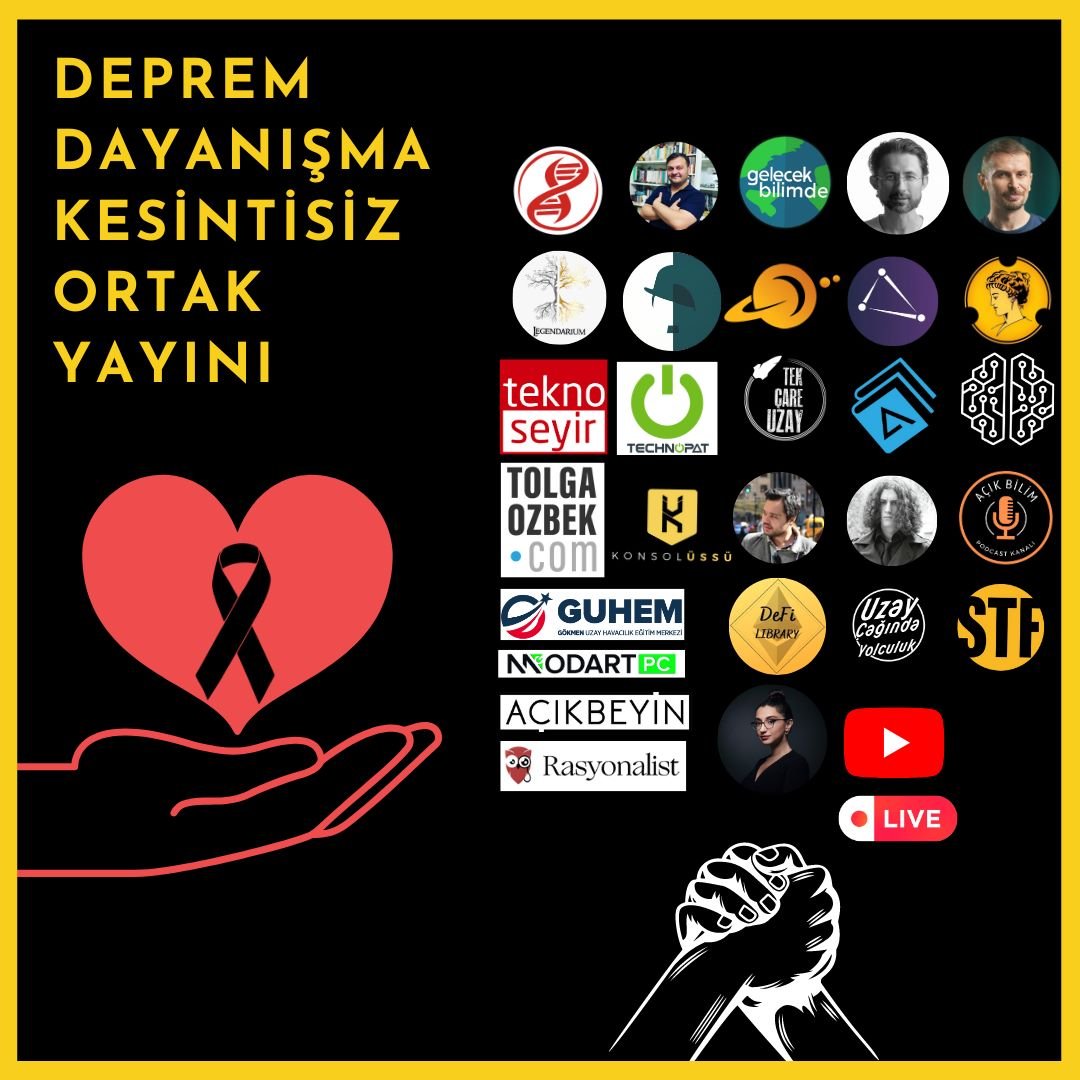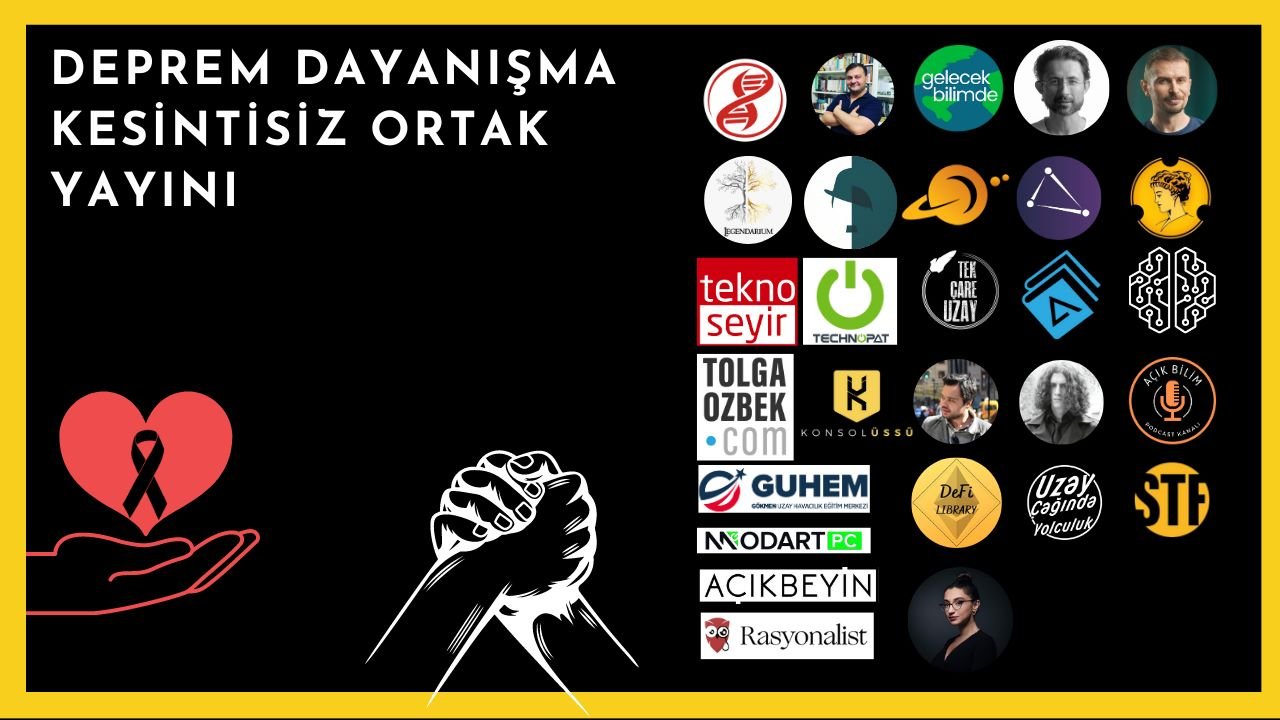 Türkiye, pazartesi günü yaşanan iki büyük depremin yaralarını sarmaya çalışıyor. Bu kapsamda sevilen teknoloji, sanat ve bilim odaklı içerikler hazırlayan 27 platformun ortak yayını ile birlikte deprem bölgesine gönderilmek için YouTube üzerinden bağış toplanmaya başlandı. Şu ana kadar yapılan yayınlarda 350 bin Dolara yakın yardim toplandı. Bilim platformları yayınları tüm hafta boyunca 24 saat aralıksız bir şekilde sürdürerek yardım toplamaya devam edecek.