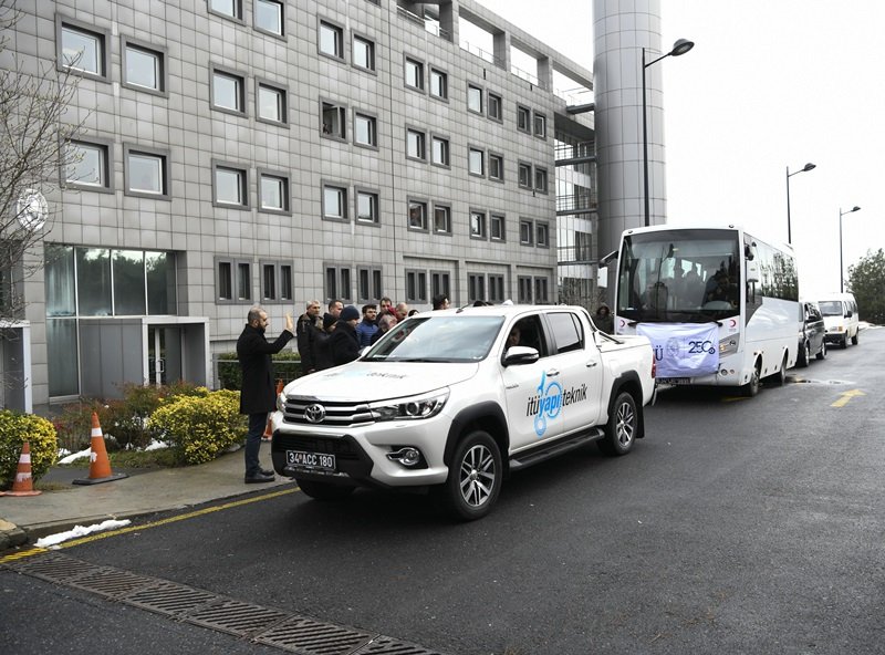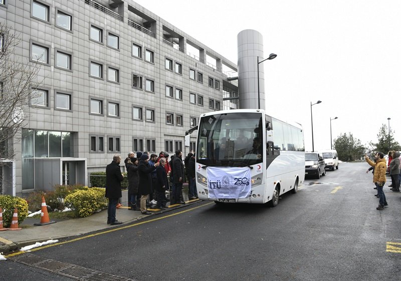 Üniversite çalışanlarından oluşan destek ekipleri, İTÜ Rektörü Prof. Dr. İsmail Koyuncu ve İTÜ Ailesi hep birlikte uğurladı. İTÜ insani destek ekibi Ayazağa Yerleşkesi’ndeki Rektörlük Binası önünden yola çıktı.