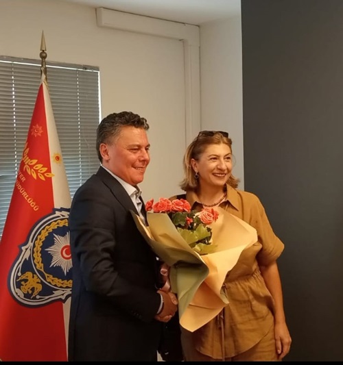 Sarıyer İlçe Emniyet Müdürlüğü’nde gerçekleşen ziyaretin sonunda çiçek takdim edilerek, toplu fotoğraf karesinde bir araya gelindi. Dr. Sibel Kumbasar Bayraktar, misafirperverliğinden ötürü Sarıyer İlçe Emniyet Müdürü Şinasi Yüzbaşıoğlu’na teşekkür etti.