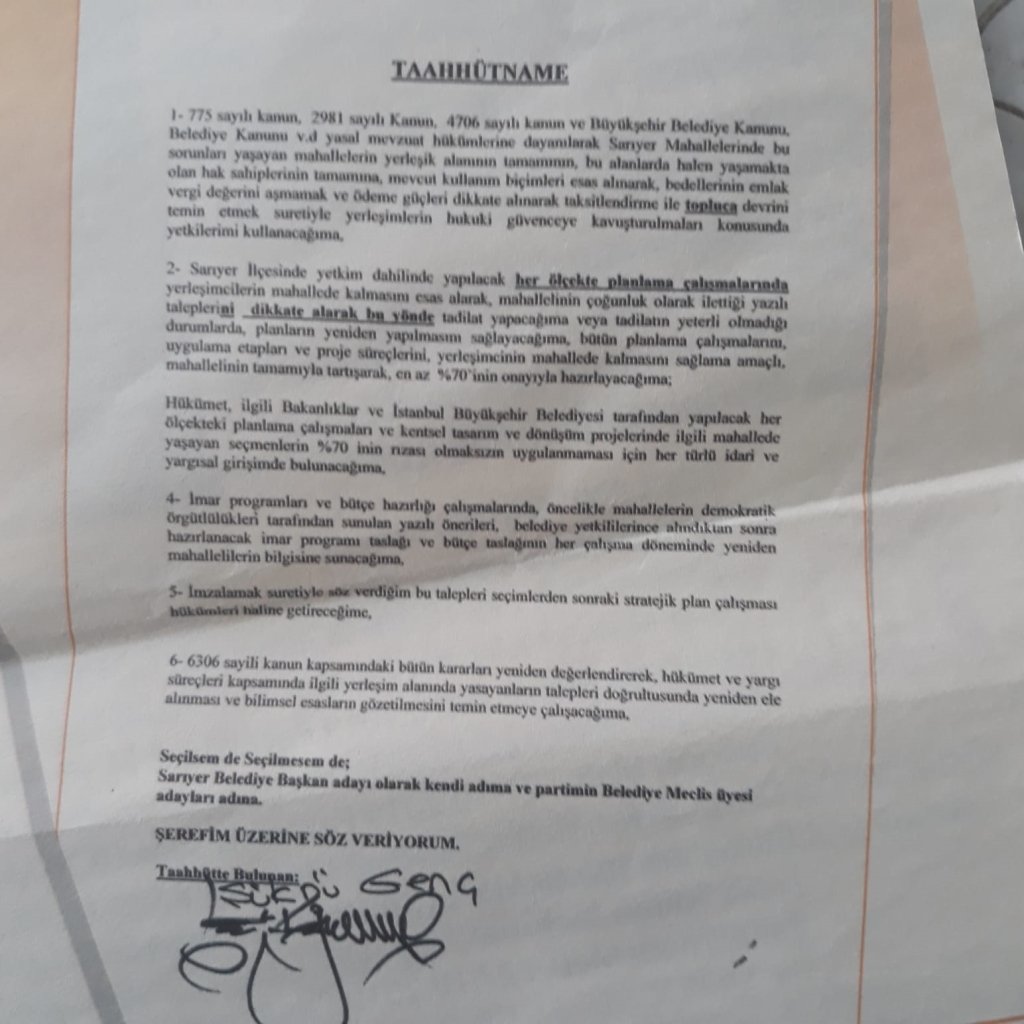 Öte yandan Sarıyer Gazetesi İmtiyaz Sahibi ve Genel Yayın Yönetmeni Bekir Batu da tapu mücadeleleri konusunda geçmişte olduğu gibi bundan sonraki süreçte de mahalleler birliğinin yanında olmaya devam edeceklerini söyledi.