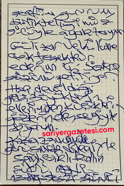 Terör örgütüne mali finans sağlamak amacıyla belediyeden ihale verme suçundan 155 gündür tutuklu bulunan 71 yaşındaki Sarıyer Belediyesi Eski Başkanı Şükrü Genç’in kendi el yazısıyla kaleme aldığı mektup, Başkan Genç’in yaşadığı sağlık sorunlarını da gözler önüne serdi. Öte yandan Şükrü Genç, 15 Eylül’de Çağlayan Adliyesi’nde İstanbul 14. Ağır Ceza Mahkemesi‘nde ikinci kez hakim karşısına çıkacak. Şükrü Genç’in yaşadığı sağlık sorunları nedeniyle mahkemeden tutuksuz yargılanmayı ve beraatini talep edeceği de belirtiliyor.