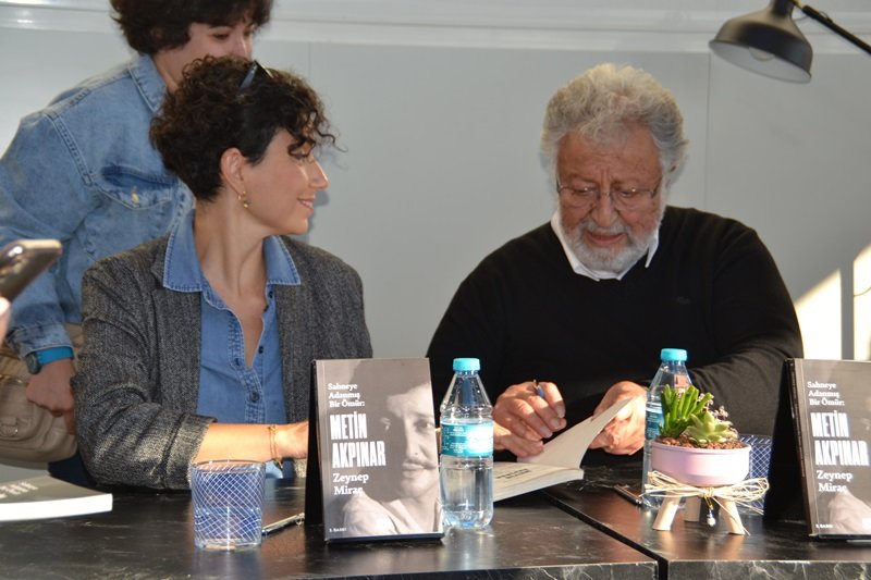 Usta sanatçı Metin Akpınar ve kitabın yazarı gazeteci Zeynep Miraç, kitapseverlerle sohbet ettiler. Hafta sonunu fırsat bilen İstanbullu kitapseverler Kadıköy’deki keyifli buluşmada “Sahneye Adanmış Bir Ömür: Metin Akpınar” kitabını imzalattılar. Kitabın yazarı ve kitaba konu olan sanatçıyla bir araya gelmekten mutlu olan kitapseverler usta oyuncuyla bol bol hatıra fotoğrafı çekildiler. Metin Akpınar’ın yaşamını konu alan kitapta Zeynep Miraç yönelttiği sorularla sanatçının yaşamına ışık tutuyor. Biyografik eserde sanatçı Akpınar’ın geçmişten günümüze kadar fotoğrafları da yer alıyor.