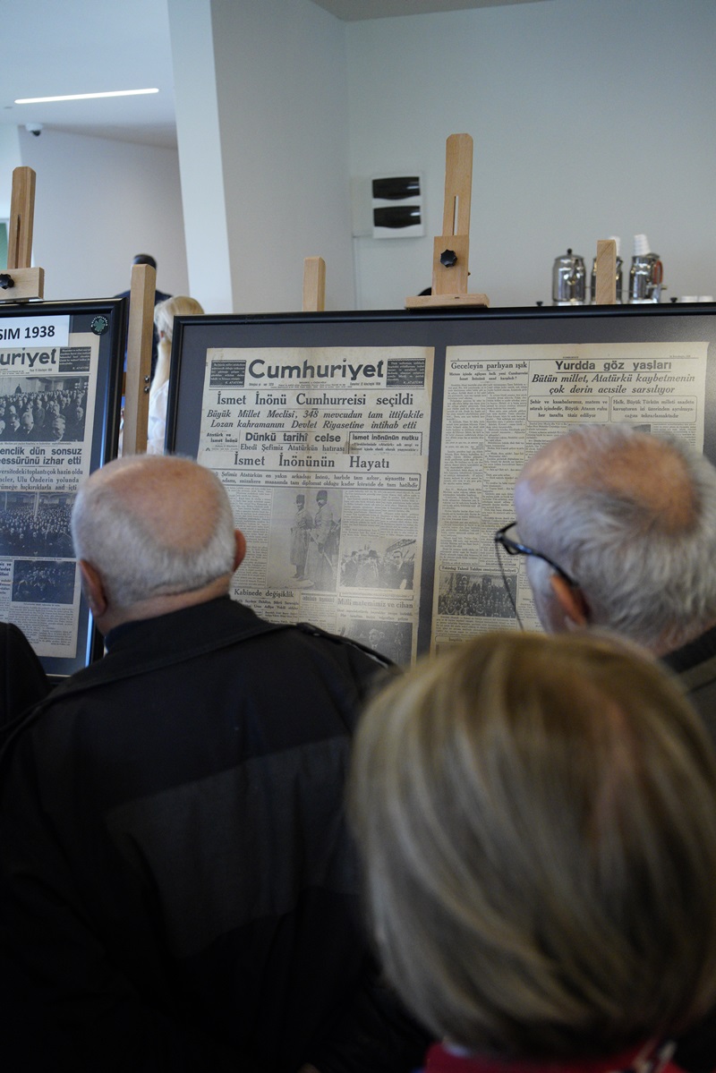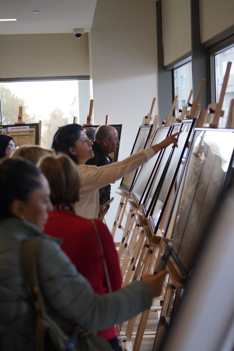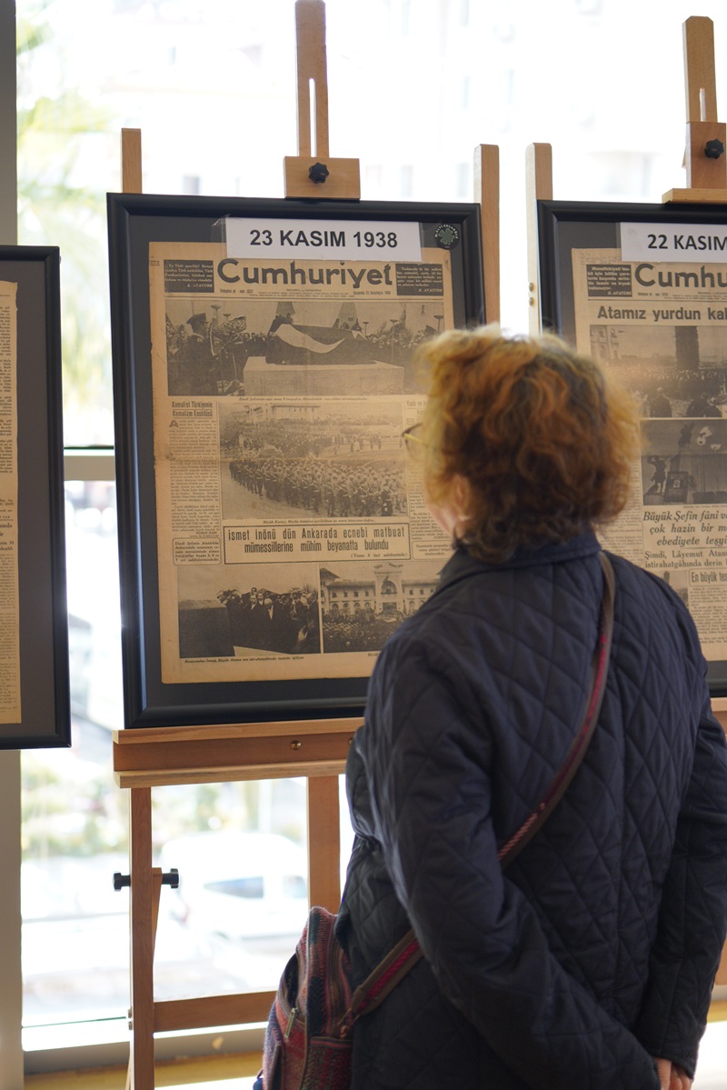Tarihi belge niteliğindeki gazete kupürleri ve manşetler, o dönemin halkının ve medyanın Atatürk’e olan vefasını ve Cumhuriyetin ilk yıllarını nasıl karşıladığını gözler önüne serdi. Sergi 22 Kasım’a kadar İnal Aydınoğlu Kültür Merkezi’nde ziyaret edilebilecek.
