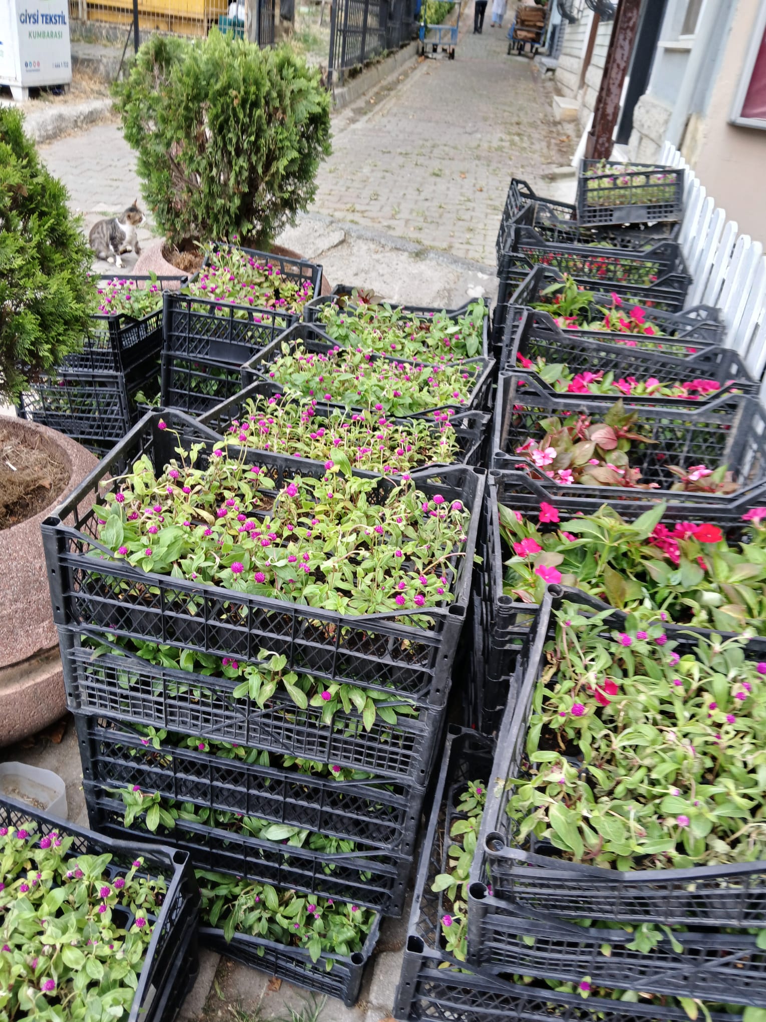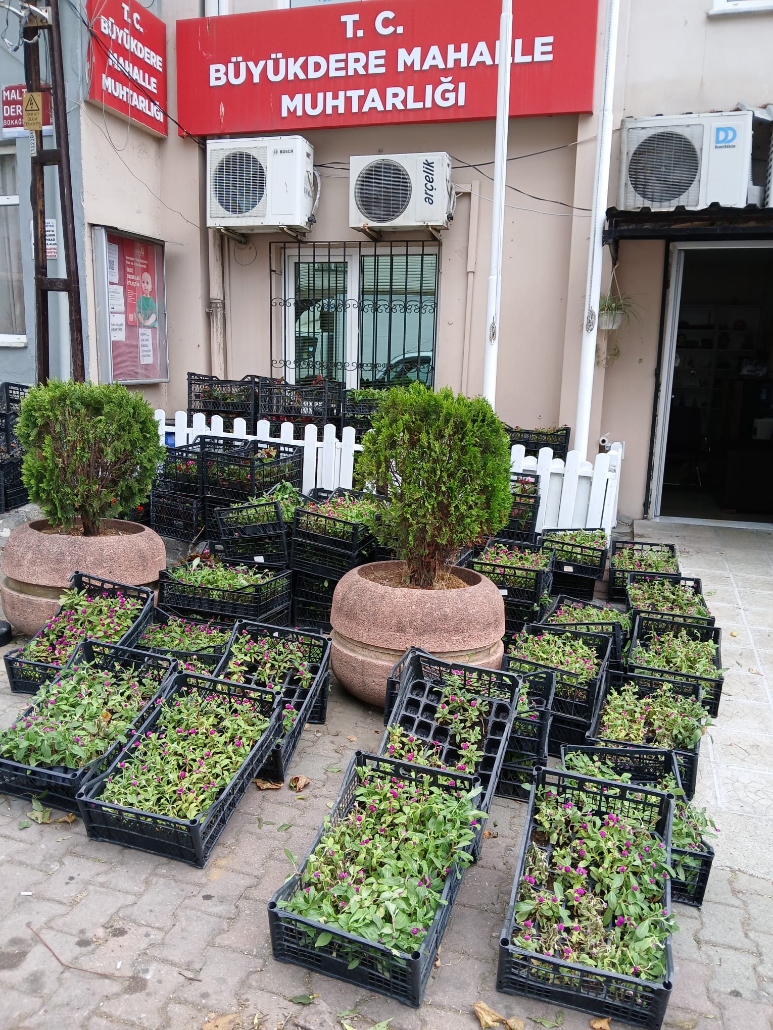 Büyükdere Muhtarı Ali Yazıcı, mahallesinde yaşayan vatandaşların mezarlıklara dikebilmeleri için çiçek dağıtımında bulundu.