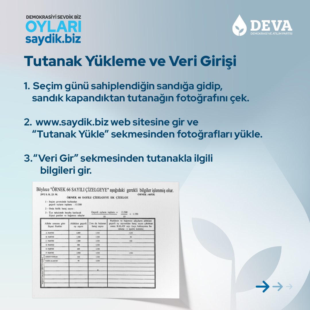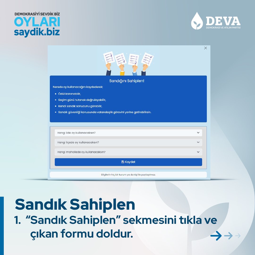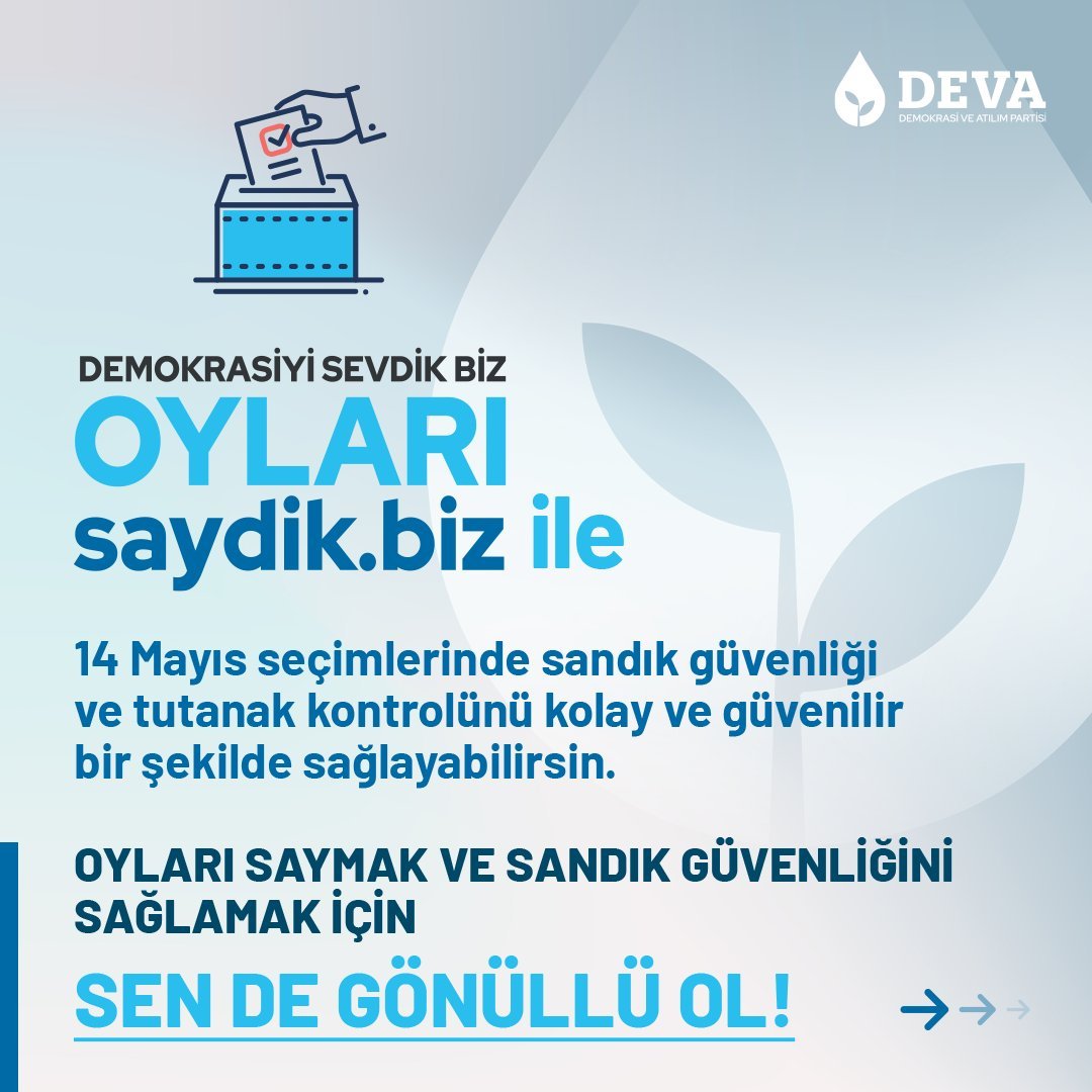 DEVA Partisi’nin teşkilatı tarafından desteklenen “saydik.biz“, demokrasiyi ve seçimlerde şeffaflığı önemseyen vatandaşlar için kritik bir araç haline gelmiştir. Platform, vatandaşların sandık sonuçlarını daha yakından takip etmelerini ve seçim sürecinin doğru ve şeffaf bir şekilde yönetilmesini sağlayarak demokrasinin sağlam temeller üzerinde yükselmesine katkıda bulunuyor.