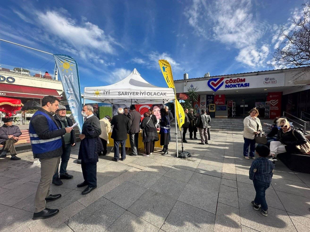 İYİ Parti Sarıyer İlçe Başkanlığı’nın sosyal medya hesaplarında yaptığı açıklamada, “İlçe Başkanımız İbrahim Temur ve Yönetim Kurulu Üyelerimiz ile birlikte; #Sarıyer Merkez İDO önünde açtığımız tanıtım çadırında çay ikramında bulunarak, vatandaşlarımızla bir araya geldik. Mahallemizin sorunlarını tespit etmek için anket çalışması yaptık. Hür ve Müstakil İYİ Partimizi, İYİ Belediyecilik anlayışımızla Sarıyer için gerçekleştirmeyi planladığımız projelerimizi anlatarak, yeni üye kazanımlarında bulunduk.” ifadelerini kullandı.