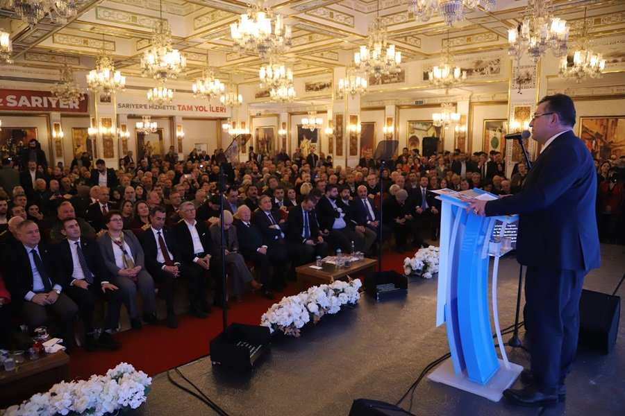 Salonda bulunan dostlarımın, komşularımın güven veren, umut dolu, parıl parıl parlayan gözlerini görüyorum. Siz komşularımın ve belediye meclis üyelerimizin desteğiyle Sarıyerimizi, Cumhuriyetimizin ve Ulu Önderimiz Gazi Mustafa Kemal Atatürk’ün yolumuzu aydınlatan ışığı gibi, yani sizin gözlerinizin ışığı gibi parıl parıl parlayan bir ilçe yapmak için bilim insanlarıyla, akademisyenlerle, alanında uzman isimlerle gece gündüz demeden çalıştık, genciyle yaşlısıyla, kadınıyla erkeğiyle Sarıyerli komşularımdan aldığımız geri dönüşler neticesinde 5 yıllık stratejimizi hazırladık.