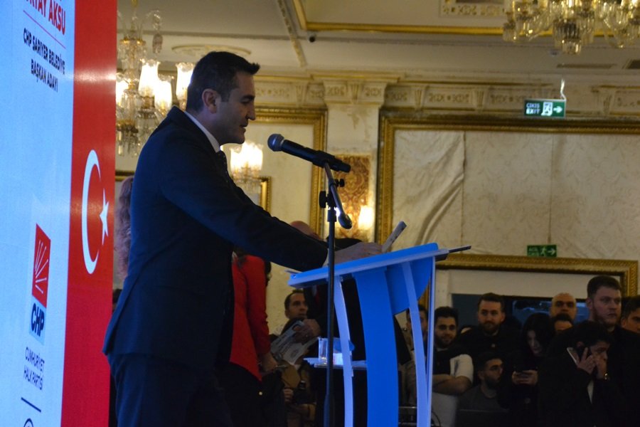 Toplantıda konuşan Aksu şunları söyledi; Sarıyer’in sorunları var. Sarıyer’deki emeklilerin sorunları var, işçilerin sorunları var, ev hanımlarının, çocukların sorunları var, yaşlıların, Romanların sorunları var, engellilerin, gençlerin sorunları var. Kısaca her kesimin bizlerden ayrı ayrı beklentileri var. Ülkemizin içinde bulunduğu siyasi, ekonomik ve sosyal sorunlardan Sarıyerlilerimiz de kendi payına düşeni alıyor. Sarıyerli komşularımız bizden hizmet bekliyor. Bizden zor yaşam koşullarını değiştirmemizi istiyor. Sarıyerliler bizden mülkiyet problemini uzman ve güvenilir ellerde çözmemizi bekliyor. Sarıyer’de yaşayan her birey doğasının, yeşilinin korunmasını istiyor.