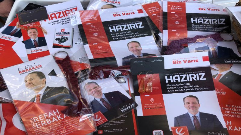 Yeniden Refah Partisi, İlçe Başkanlığı önünde stant çalışmalarına devam ediyor.