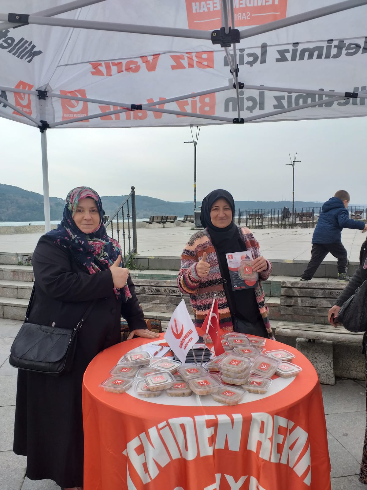 Sarıyer’de sahada sürdürdükleri çalışmalarla vatandaşların sevgisini kazanan Yeniden Refah Partisi Sarıyer İlçe Başkanlığı, bu kez de Regaip Kandili vesilesiyle ikramda bulundu. Sarıyer Merkez’de açtıkları stantta Regaip Kandili ve Osmanlı Haftası çalışması yapan Yeniden Refah Partililer yoğun ilgi gördü.