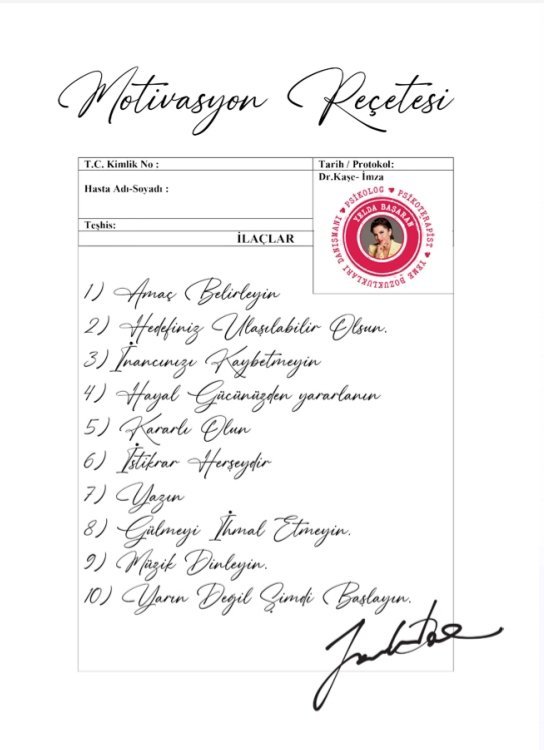 Uzman Psikolog & Psikoterapist yazar Yelda Başaran, yeni yıla “merhaba” dediğimiz şu günlerde ocak ayına özel 10 maddelik bir motivasyon reçetesi verdi.